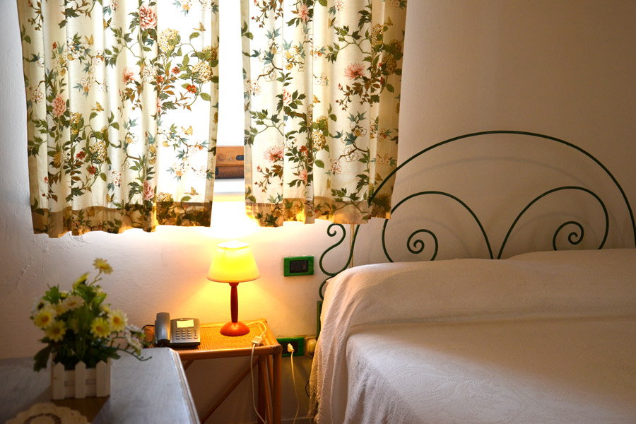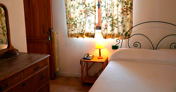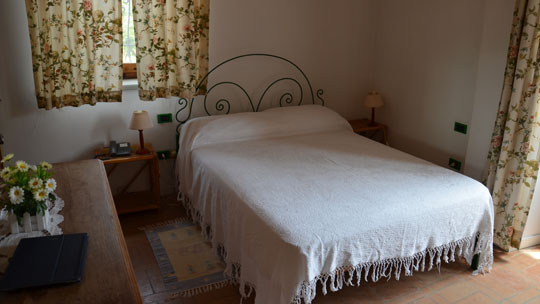 La camera, intima e confortevole, con letto matrimoniale o 2 letti singoli, ha il bagno privato con doccia, un grande ventilatore a soffitto, climatizzazione, riscaldamento invernale, frigobar, TV, e wifi libero. È dotata di un balcone da cui si accede al prato della Pineta al centro del Parco del Casale. Per questa sistemazione, viene fornita la biancheria da letto e da bagno (un cambio dopo tre pernottamenti), ed è inclusa la pulizia e il riassetto giornaliero.